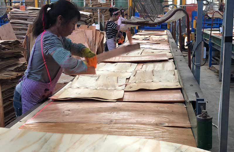 細節1:采用的原材料單板均為無破損一級板,在排板時遇到有破損的單板堅決挑出來,絕不混水摸魚。