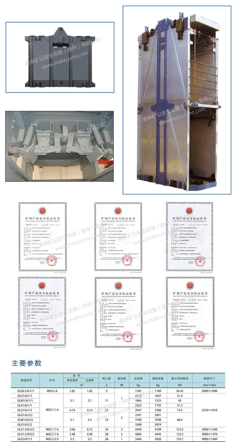單繩罐籠由楔形連接裝置、抓捕器、罐體、罐內(nèi)阻車器、導(dǎo)向裝置組成,如用于上下人,則必須設(shè)置斷繩保險器(防墜器)。