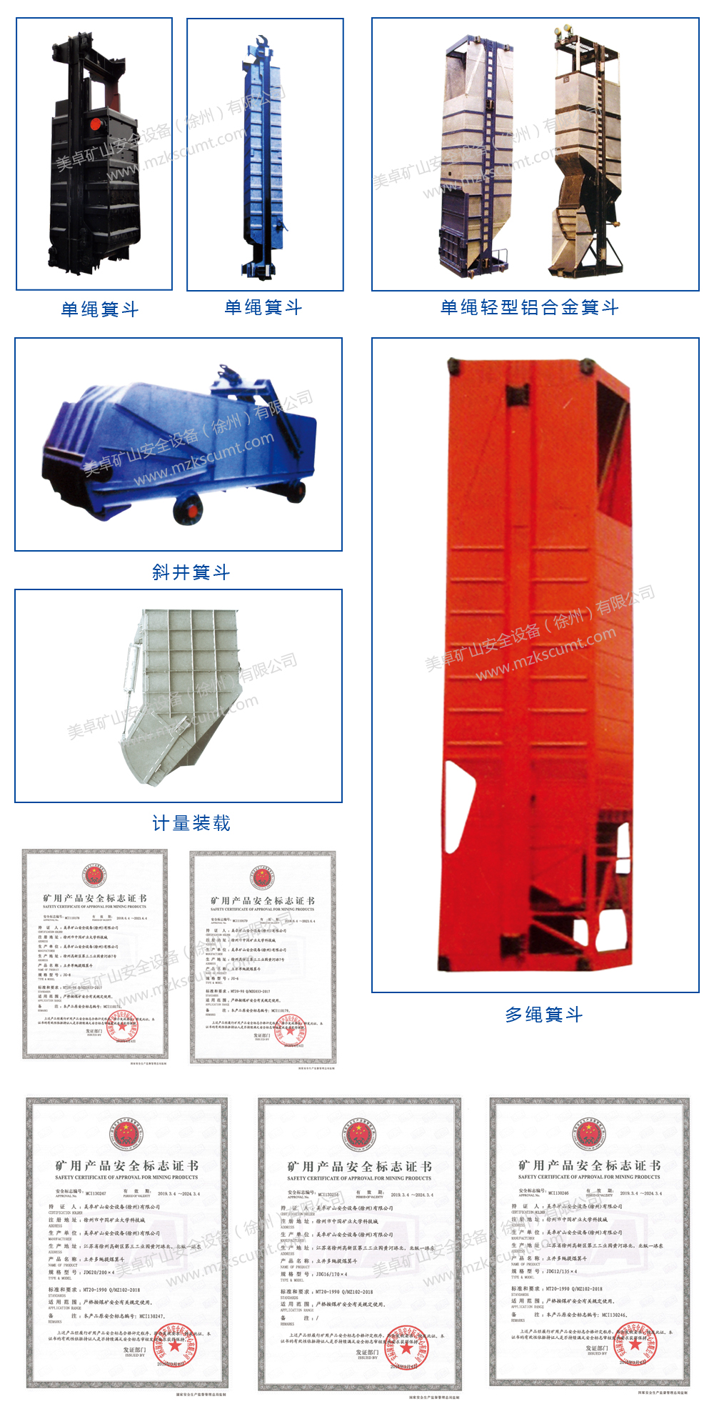 箕斗裝載裝置是指鋼絲繩提升設備的重要輔助裝置。分計重式和計容式兩類。豎井箕斗計重裝載裝置。礦石由氣動扇形閘門控制,經由給礦機、溜槽、帶式輸送機,卸入計重漏斗,并由壓磁式測力計計重。當計重漏斗內的礦石重力達到規定重力時,測力計即發出信號,給礦機和帶式輸送機相繼停上運轉。裝載時,打開計重漏斗下部的氣動閘門,計重漏斗內的礦石經活動溜槽全部裝入箕斗。裝載過程可由人下機械控制,也可實行半自動化或全自動化控制。此類裝載裝置多用于底卸式箕斗。礦石經溜槽,由氣功扇形閘門控制直接溜入計容漏斗,然后由平板閘門控制向箕斗裝載 。兩閘門之間的空間為計容容積,交替開閉兩閘門即可實現定容稱量和裝載。計容裝載裝置比較簡單,裝載過程通常由人工機械控制,多用于翻轉式箕斗。斜井箕斗也可采用計量漏斗裝置,或者用閘門直接裝載。